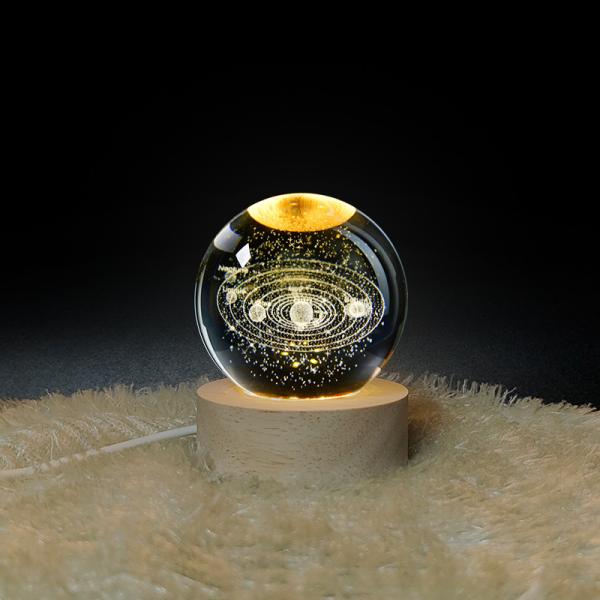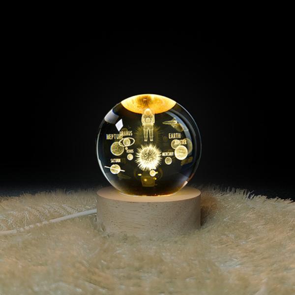 Crystal Glass Ball Warm White Wooden 3D Night Light Base Stand LED Display Stand Images |
